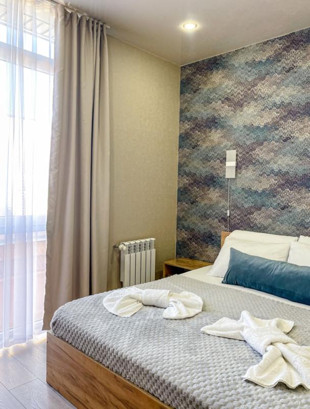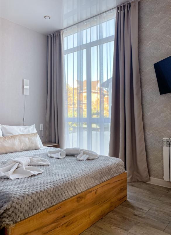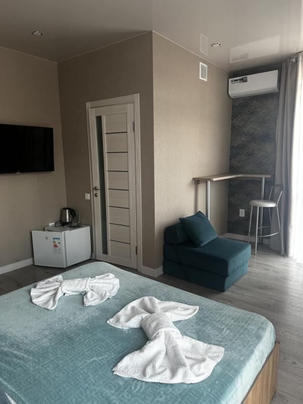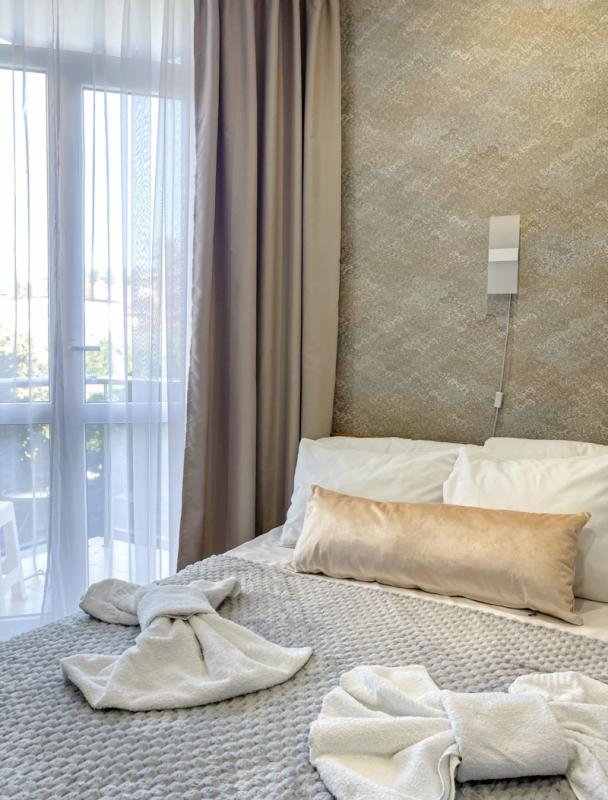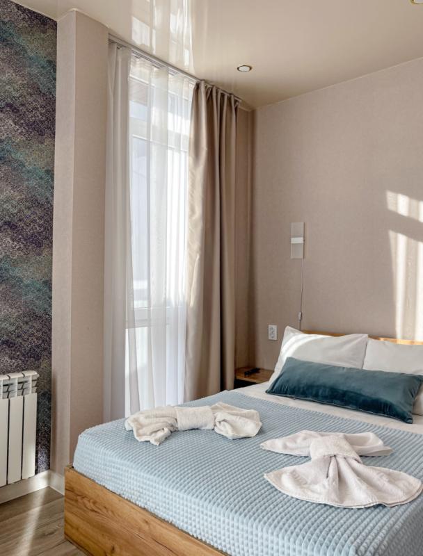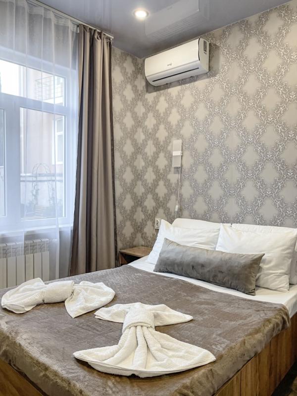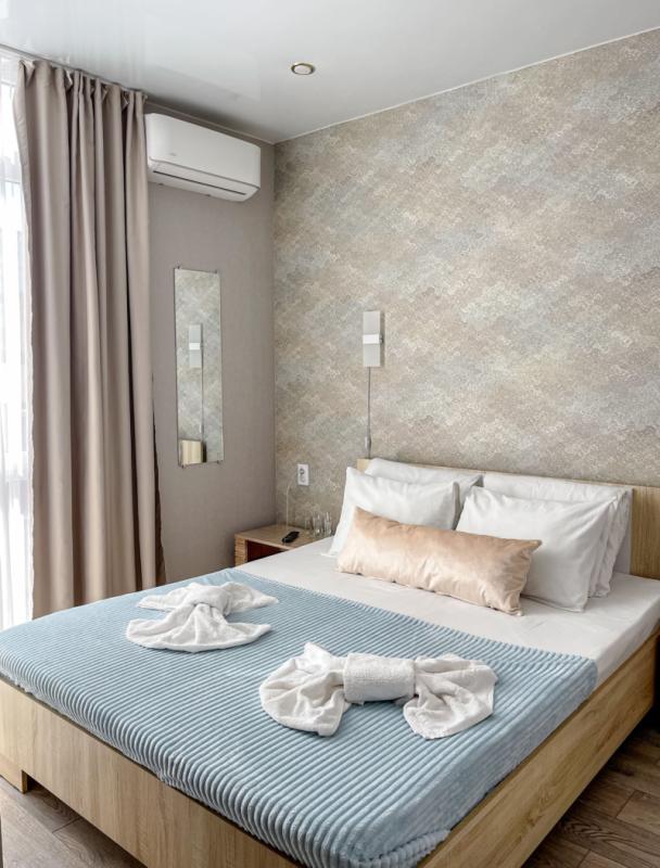 Стильный светлый дизайн номеров. Есть wi-fi, телевизор, кондиционер, чайная станция, холодильник, фен, полотенца, косметика для ванной, зубной набор